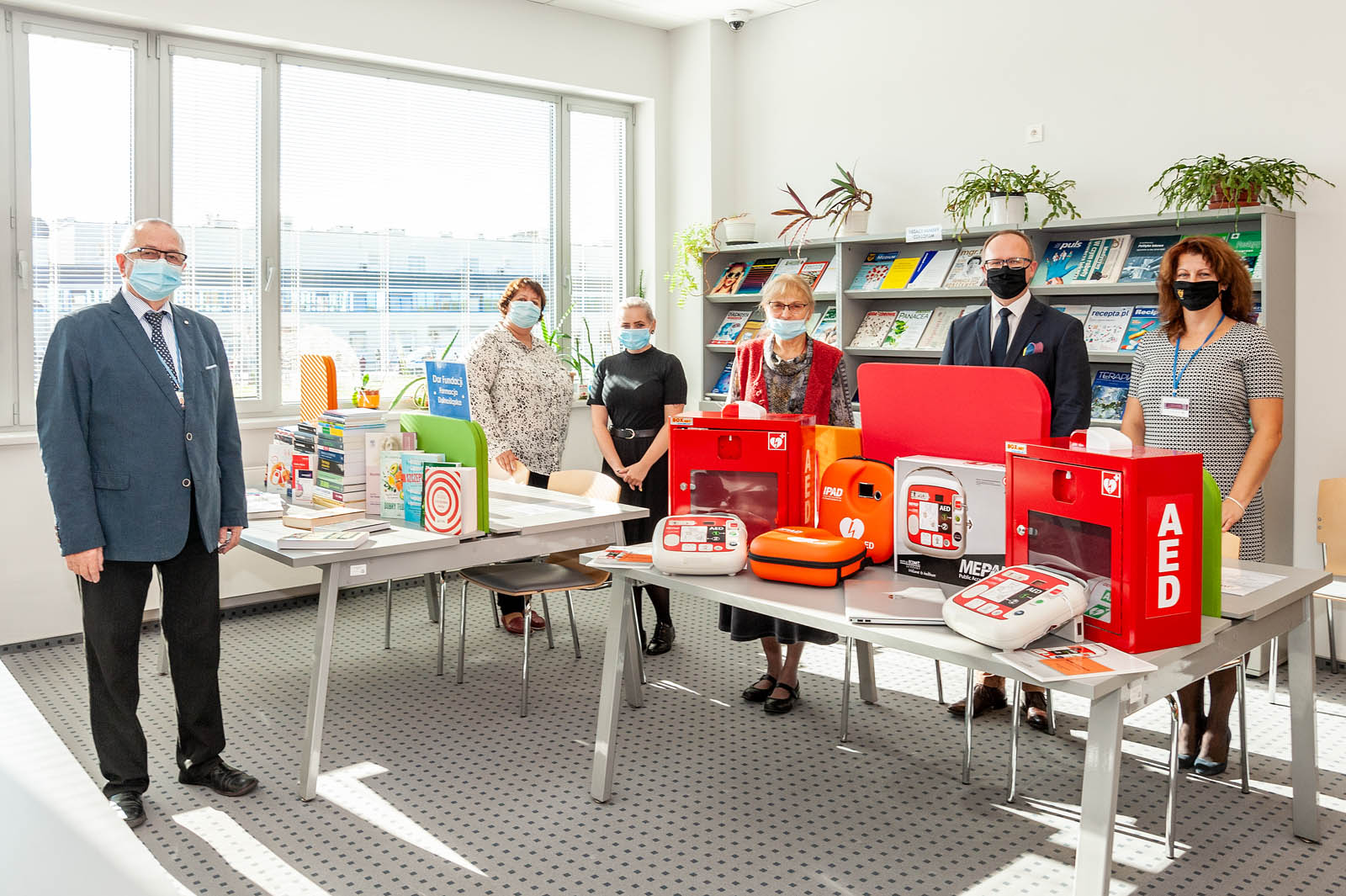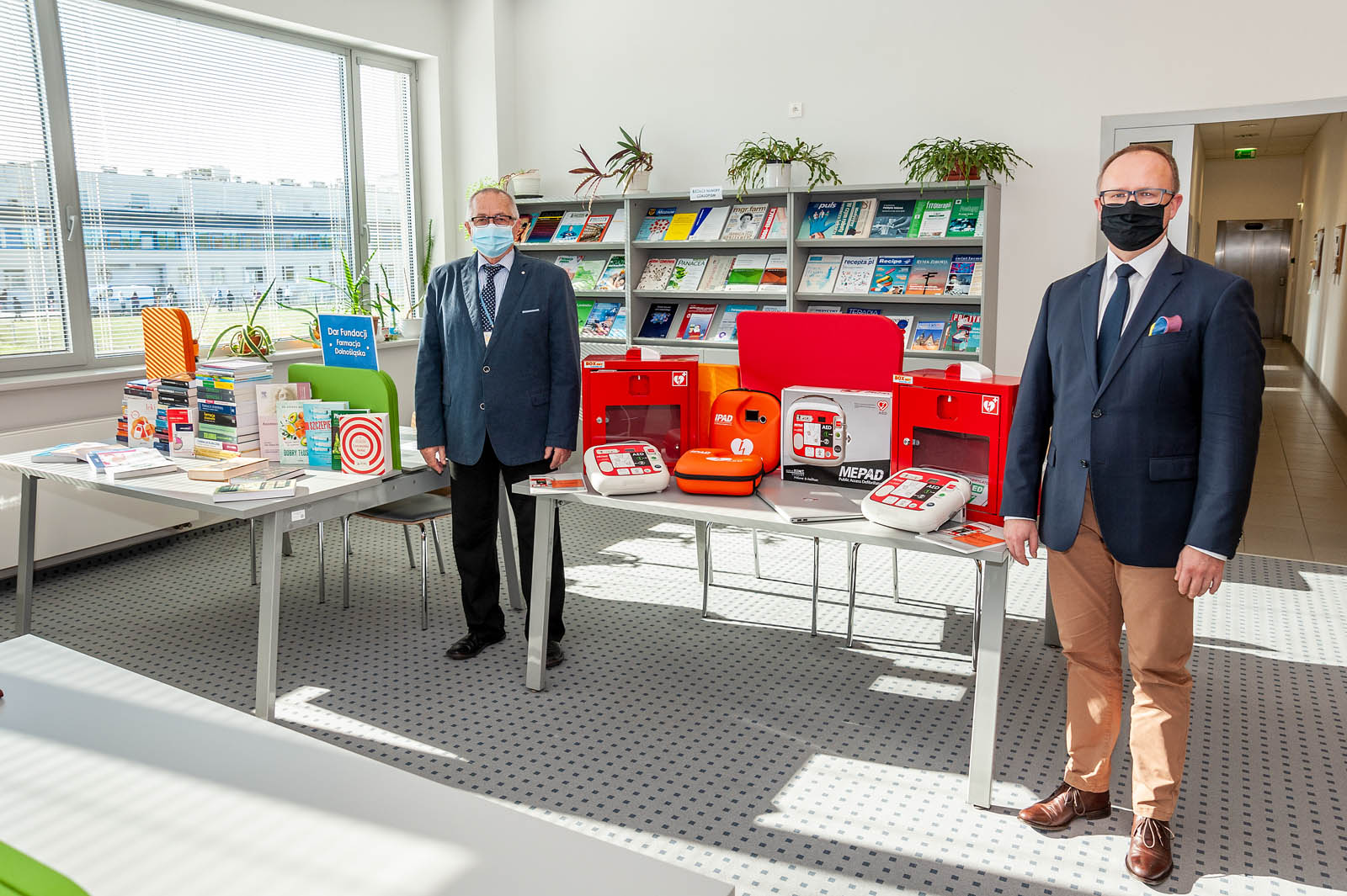 Zakupiono i przekazano dwa defibrylatory wraz z szafkami, komputer na potrzeby Dziekanatu oraz 57 różnych podręczników.